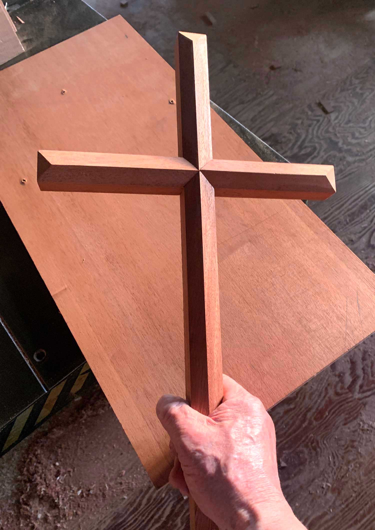 最高級のホンジョラスマホガニー材に、最高品質の設計制作を施したものには、それにふさわしいクォリティの十字架にせねばとの思いからの追求です。