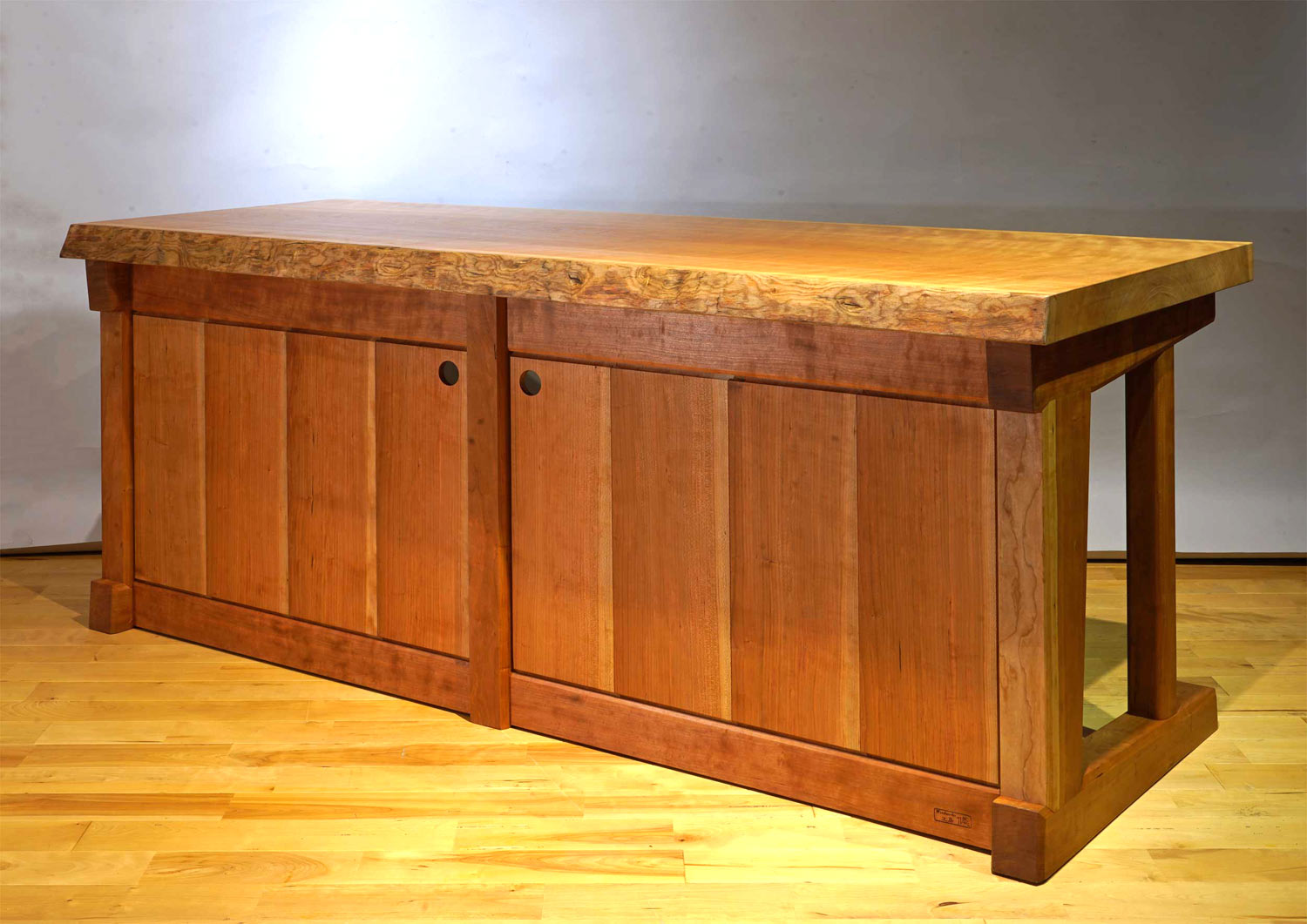 15年ほど前からブラックチェリー材を用いた家具を作ってきていますが、その全ては自身で50〜60cmほどの径の原木丸太を買い求め、製材、乾燥管理してきたものです。