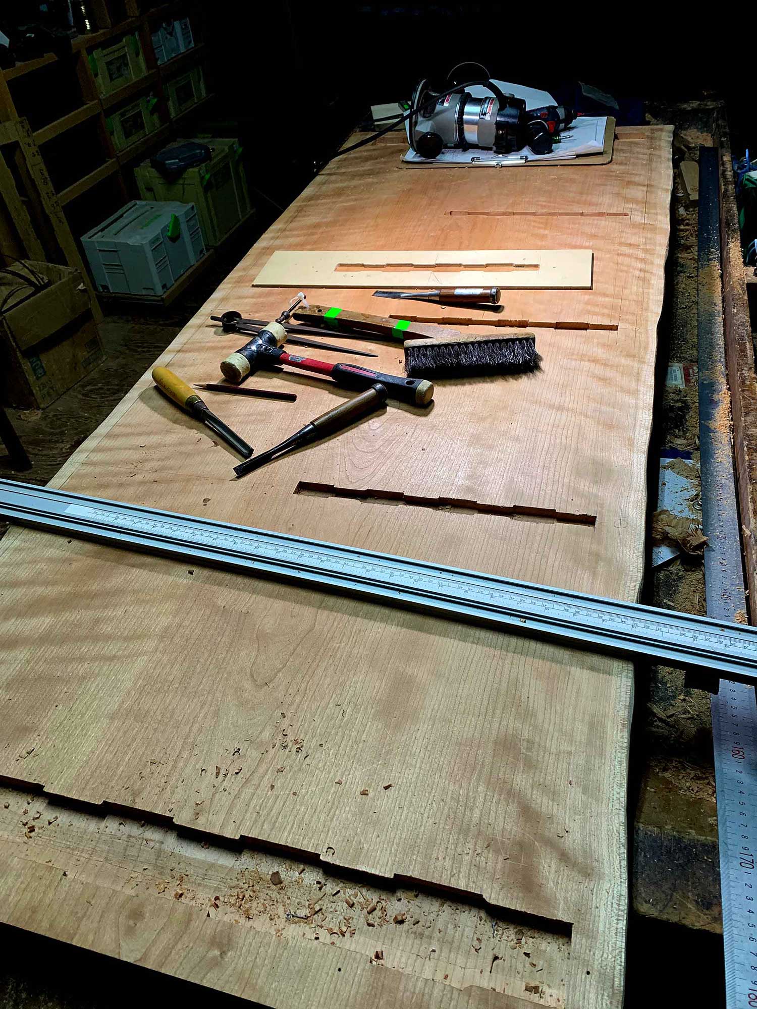 今回は、この幅広の優良材をふんだんに用いたものですが、実はメインのデスク天板も一枚板を用いました。
