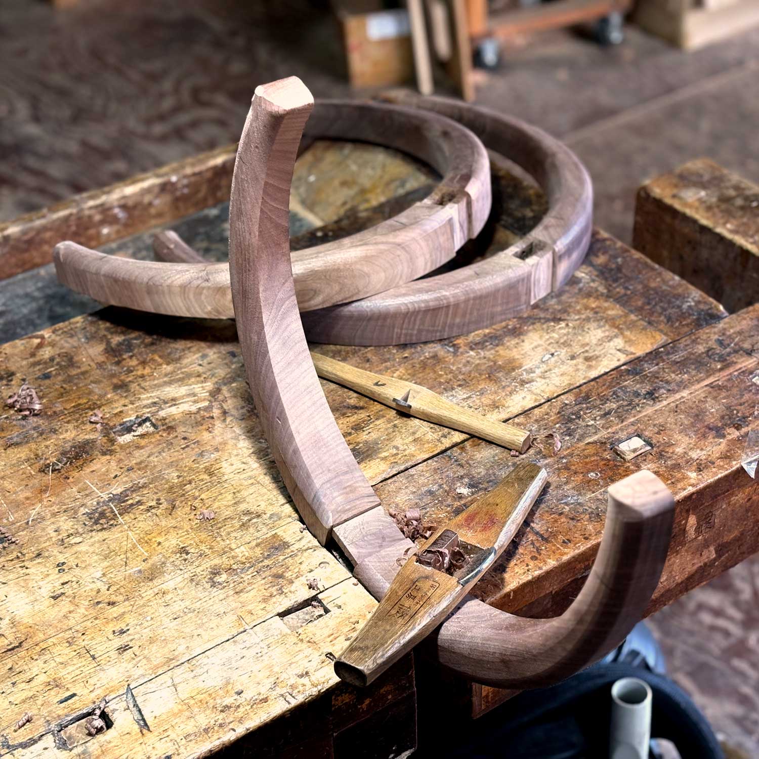 馬蹄形という形状を木という素材で適えるには〈おしゃぶり〉での接合が最適ということになります。