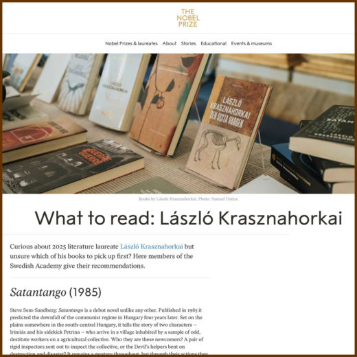 スウェーデンアカデミーからの「László Krasznahorkai 作品」ガイド