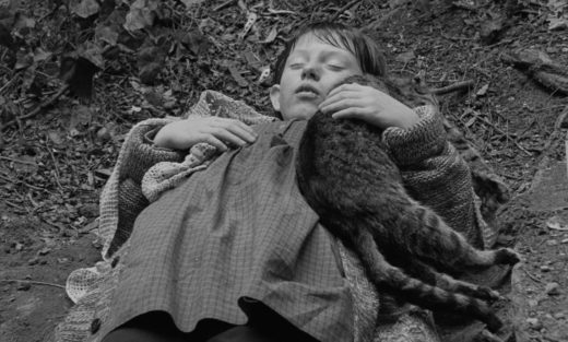 また別の間男を招き入れた母親から疎んじられ、部屋から追い出された、村では一番の弱き幼い娘(タル・ベーラ監督、 大のお気に入りと言われるエリカ・ボクという女優。他作品でも常連)は飼い猫とじゃれ合いながらも、猫に対してだけは支配者として振る舞えるところから、自己の存在証明の如くに、やがて殺鼠剤を混ぜたミルクを無理やり呑ませ、飼い猫を殺してしまう。