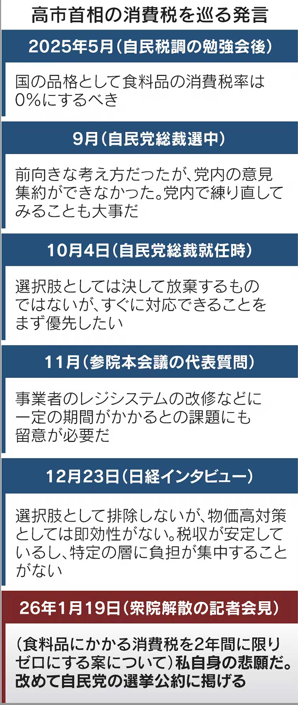 高市首相のこうした朝令暮改ですが、何も消費税に限るものでは無く、芸風のようなものと捉えた方が良いのかも知れません。
