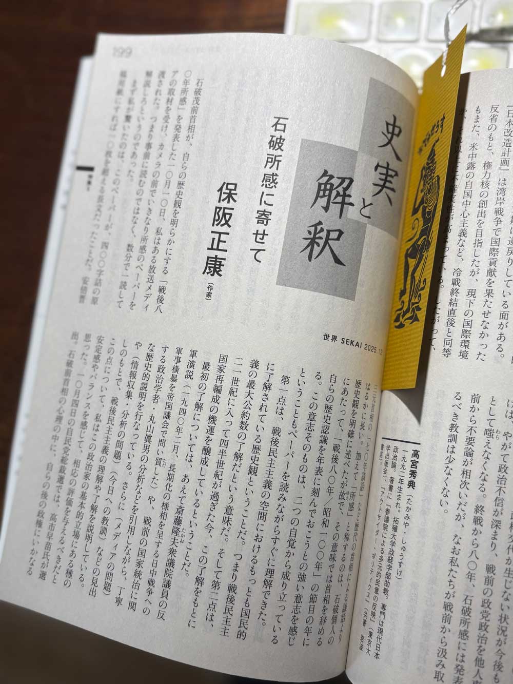 (以下はその一部。画像『世界』12月号・保阪正康氏の論評)