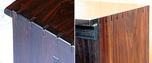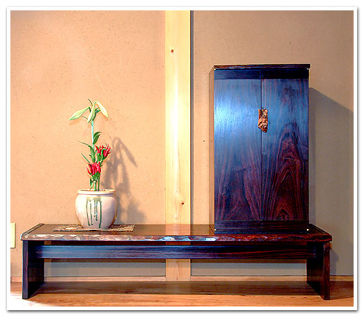 側板、天板、地板、扉、いずれも稀少木材・ブラジリアンローズウッドの1枚板で構成された端正なキャビネットです。