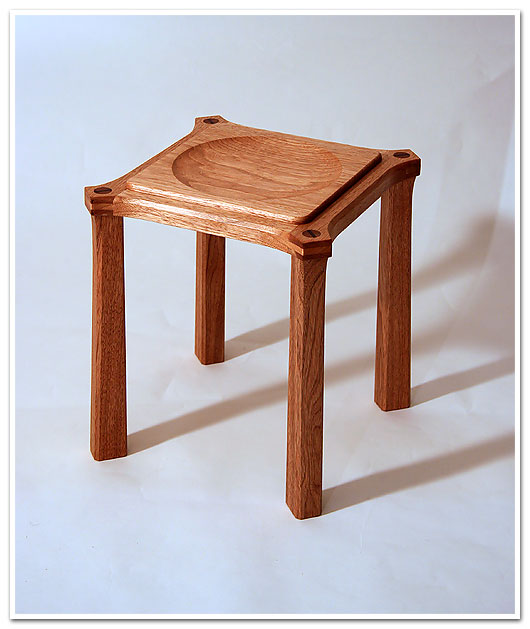 中央を窪ませた座は3枚組み手により框組された枠に収まり、この結合部に脚部が貫ほぞにて差し込まれる。