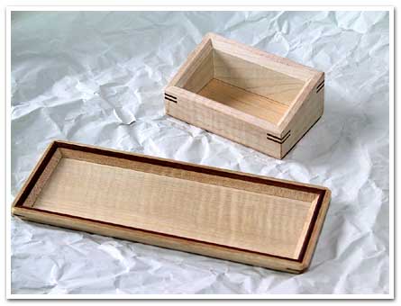 カーリー(縮み杢)を持った楓(メープル)を主材とし、ウォールナットをアクセントとして配しました。