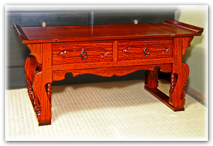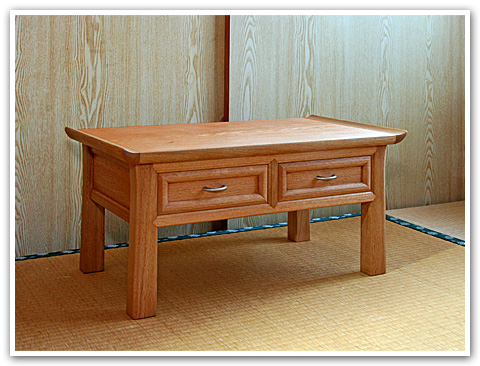 いわゆる剣留(けんどめ)と言われる伝統的な仕口を取り入れ、また抽斗前板は意匠を彫り込みで削り出すなど、シンプルモダンな中にも丁寧で贅をこらした造りをしています。
