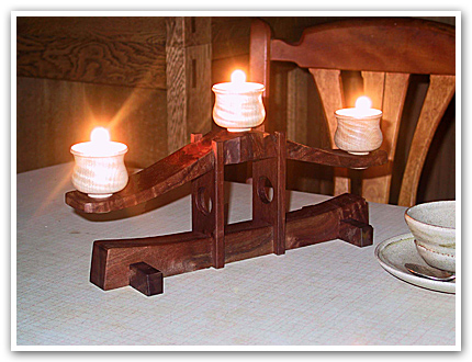 銘木クラロウォールナットなどで作られた工芸品。食卓などでほの明るいキャンドルの灯りを提供します