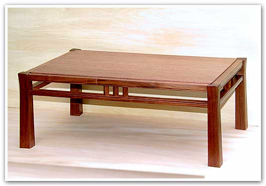 4本脚に枠を巡らせ、これにやや薄目の天板を嵌め込んだ構成になっています。