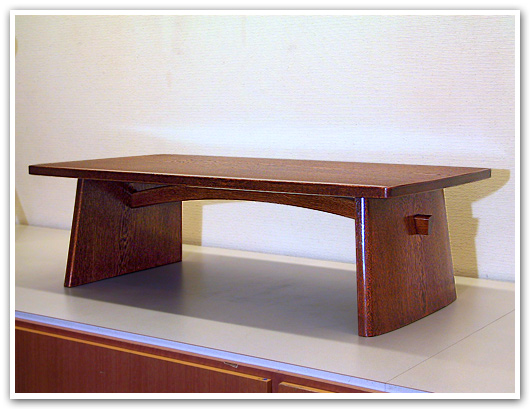 天板、脚部ともに良質の北海道産みず楢の一枚板を用いた卓。文机としても良いでしょう。