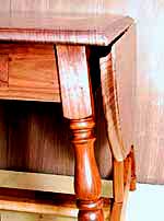 制作のポイントは脚部の四方転び(傾斜角の処理にかかわる手法)の精度、および天板バタフライ部の伸張、結合部の面取り加工の妙味と結合度の高さでしょうか。
