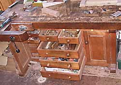 以上、簡単だが、私のワークベンチ製作の紹介を通して、木工加工における作業台の重要性について感じていただけるとするならば望外の喜びだ。これから製作しようとする人はぜひしっかりとした、あなたのベストパートナーを演じてくれるようなものを製作していただきたい。 |